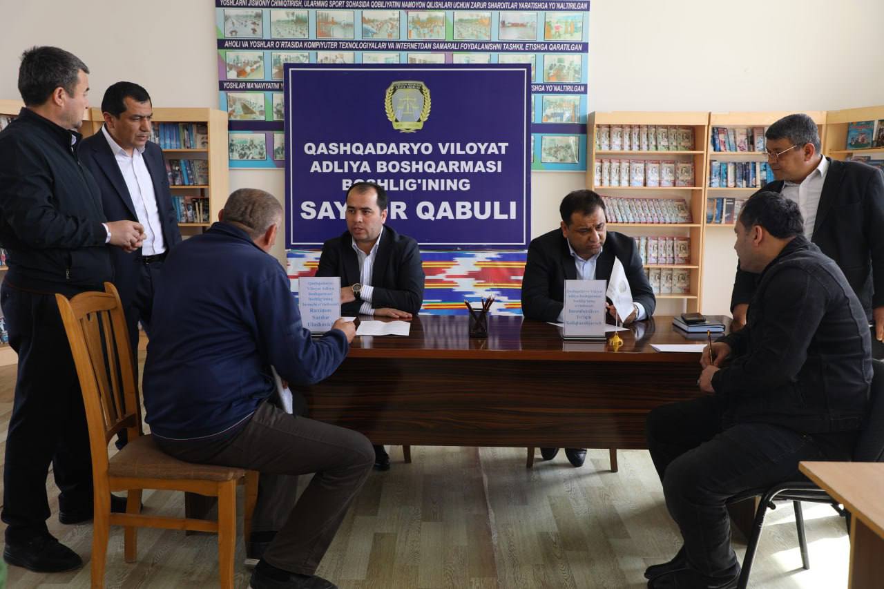 Qashqadaryo viloyat adliya boshqarmasi rahbariyati tomonidan Koson tumanidagi “Mash’al” MFYda tadbirkorlar va fuqarolar uchun sayyor qabul o‘tkazildi.