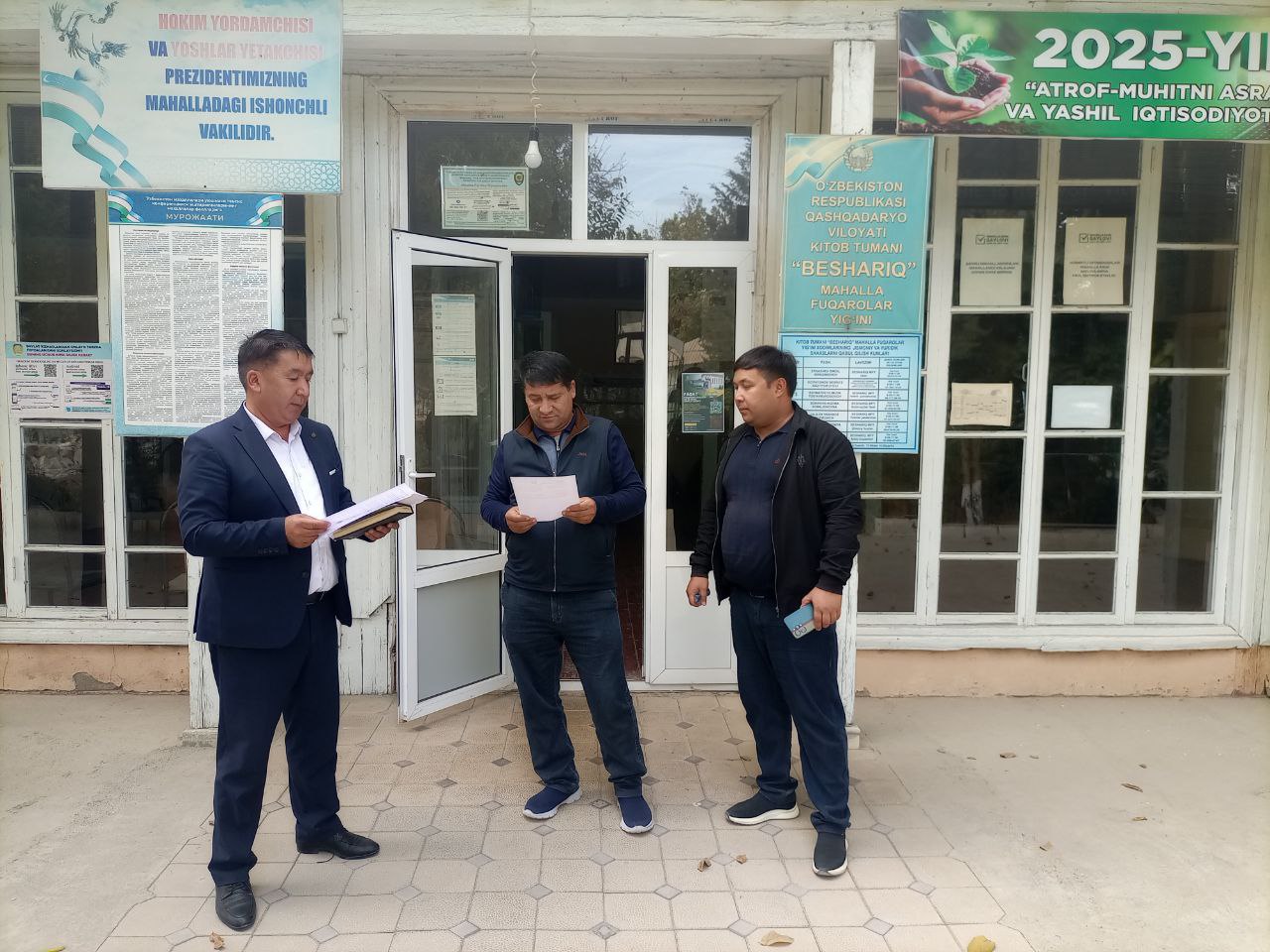 Kitob tumanida fuqarolar bilan ochiq muloqot va huquqiy maslahatlar tadbiri tashkil etildi.
