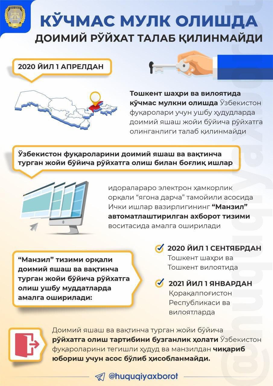 Кўчмас мулк олишда доимий рўйҳат талаб қилинмайди.