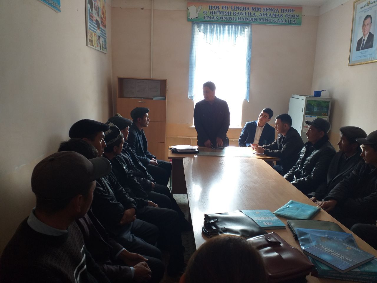 Чироқчи туман адлия бўлими томонидан аҳолини ҳуқуқий онг ва ҳуқуқий маданиятини ошириш учун жорий йилнинг 16 ноябрь куни “Хўжаобод” МФЙда тарғибот тадбири ташкил этилди.