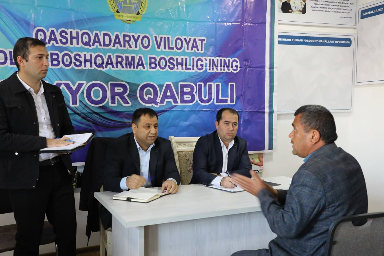 Bugun Mirishkor tumani “Obodon” hamda "O'zbekiston" mahallasida viloyat adliya boshqarmasi o'rinbosarlari tomonidan sayyor qabul tashkil etildi.