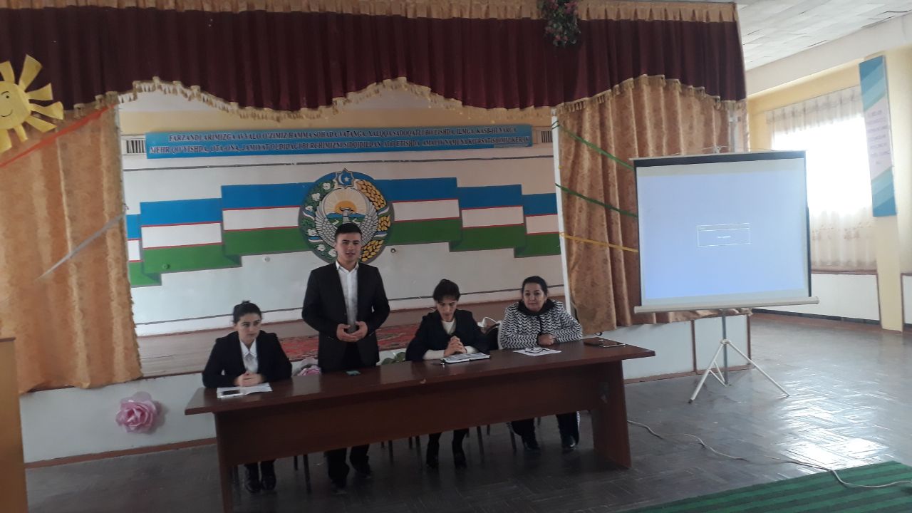 Қашқадарё вилоят адлия бошқармаси томонидан ташкил этилган “Ёш ҳуқуқшунослар” тарғибот гуруҳи аъзолари билан биргаликда Қарши шаҳридаги 25-мактабнинг ўқитувчи ва 10-11 синф ўқувчилари иштирокида тадбир ташкил этилди.