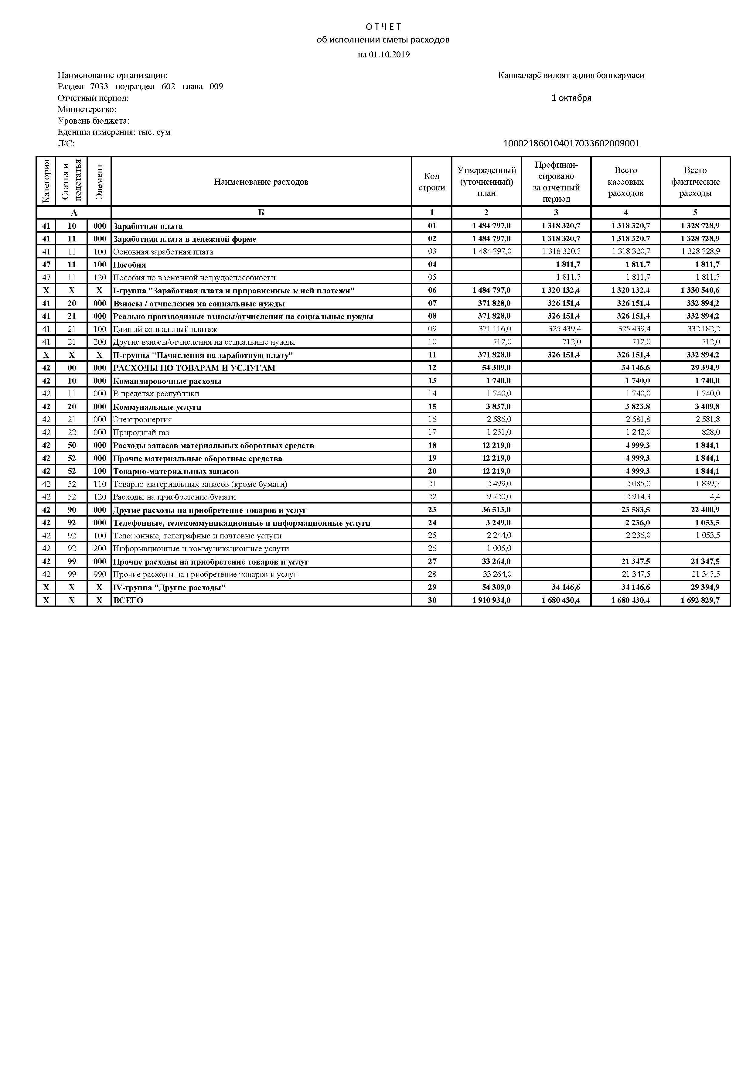 Бошқарманинг молиявий ҳисоботи