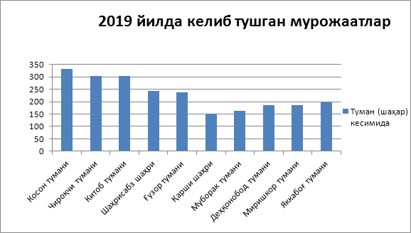 Қашқадарё вилоят Адлия бошқармаси томонидан 2019 йил давомида жисмоний ва юридик шахслардан келиб тушган мурожаатларни кўриб чиқилиши юзасидан умумлаштириш